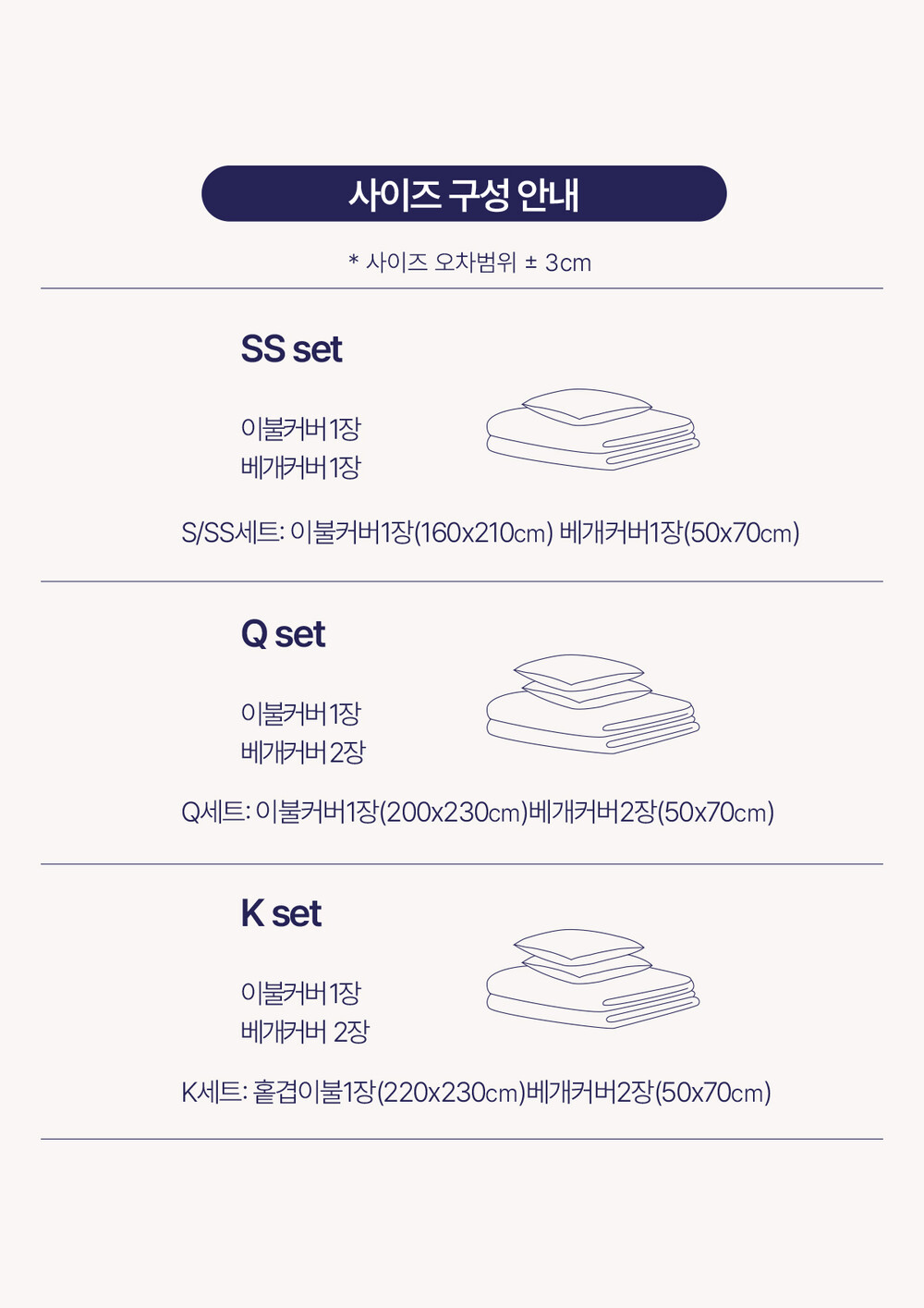 - S/SS세트 : 이불커버1장 160x210cm,베개커버1장 50x70cm