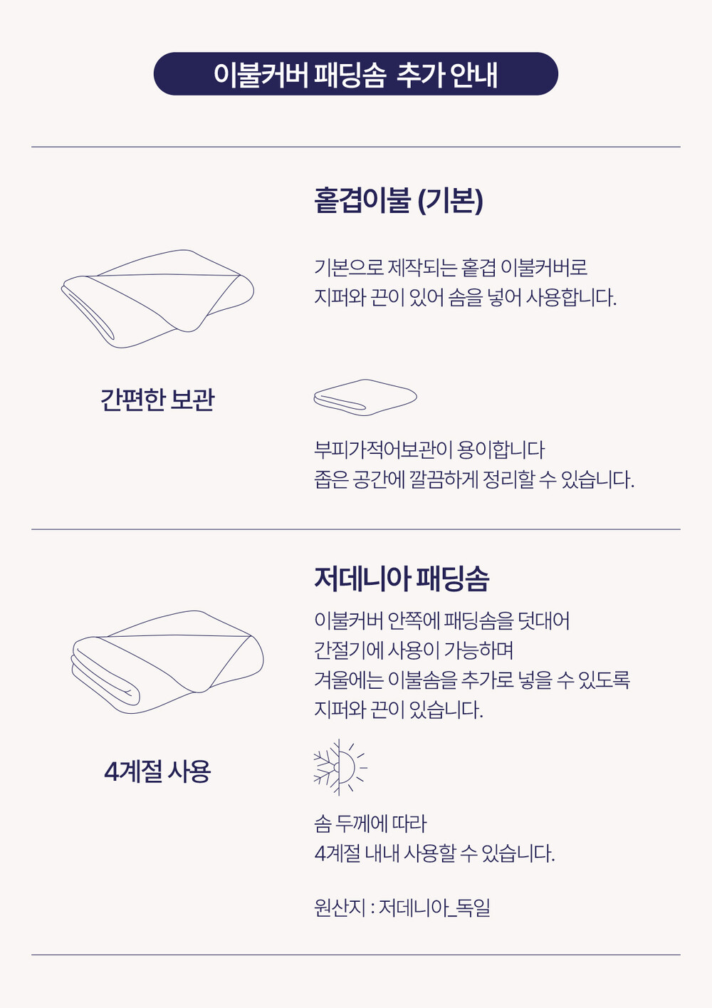 -통풍성이 좋고 자체 온도조절 능력이 있어 사계절 쾌적하게 사용가능