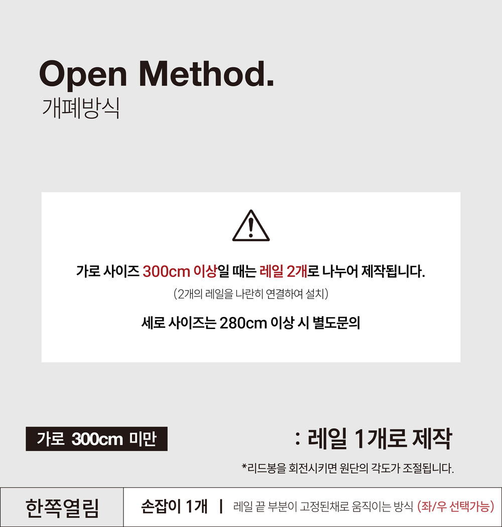 한쪽개폐 (가로 300cm 미만 가능)