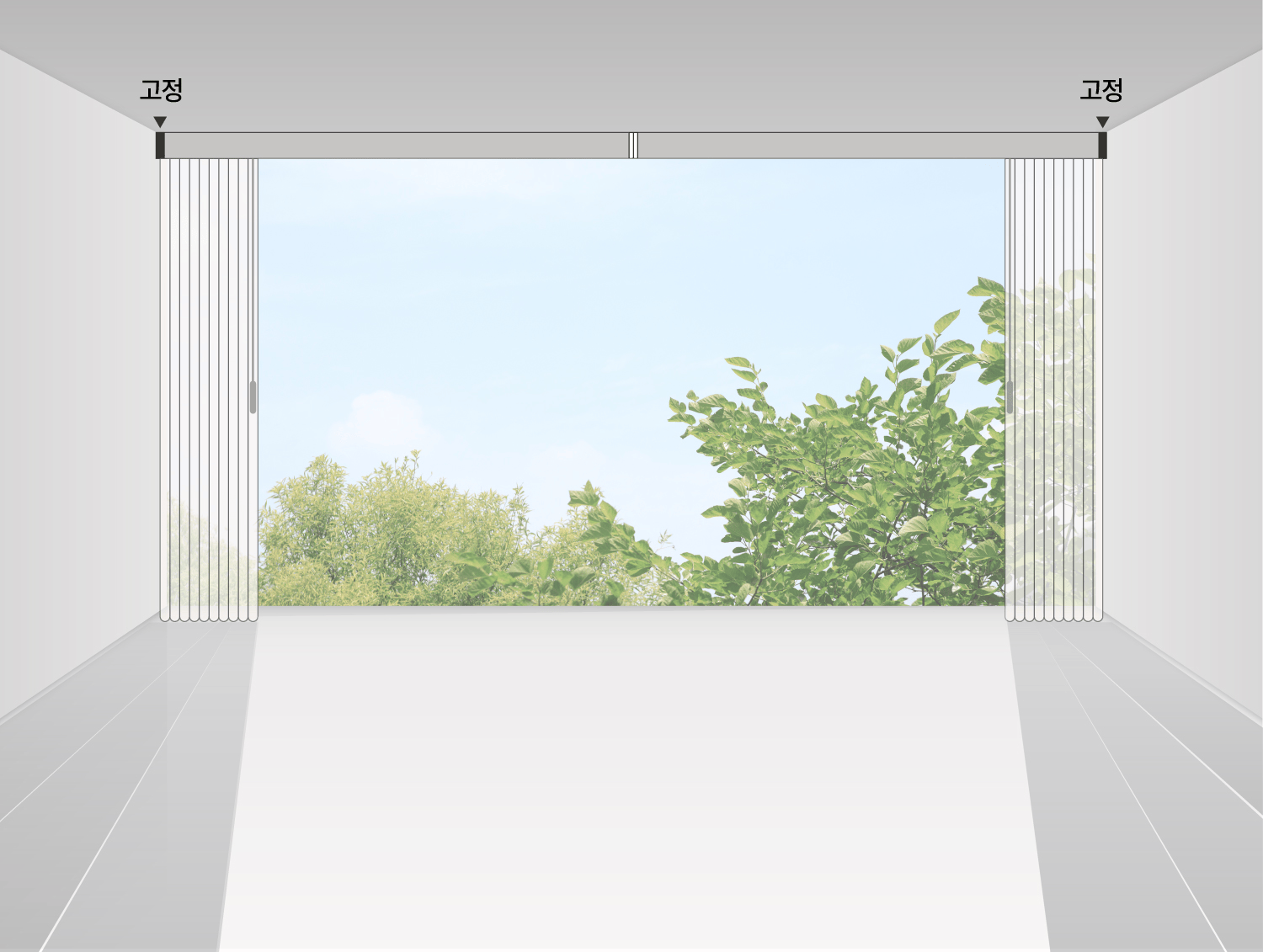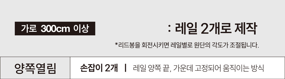 양쪽개폐 (가로 300cm 이상 : 레일 2개)