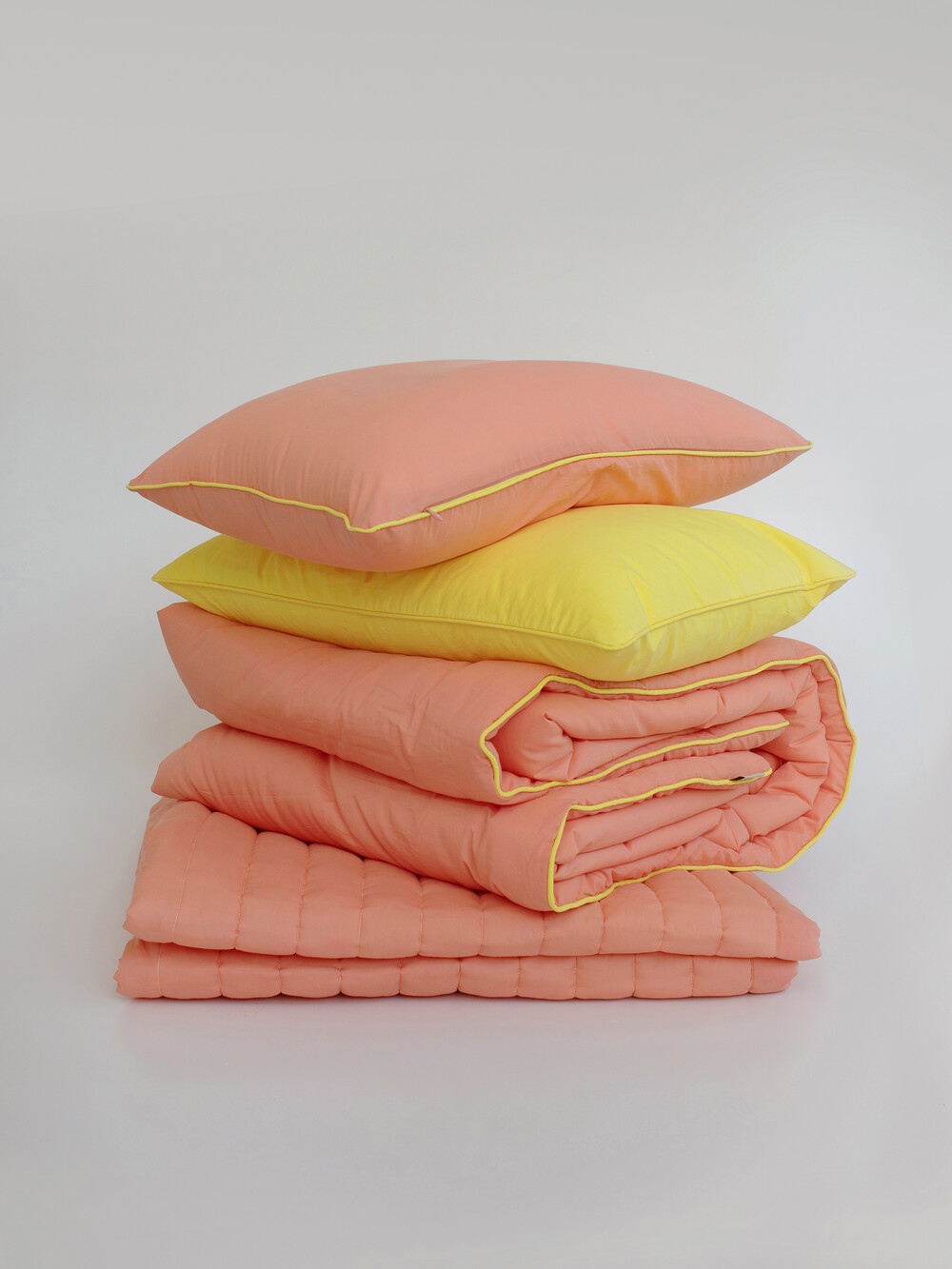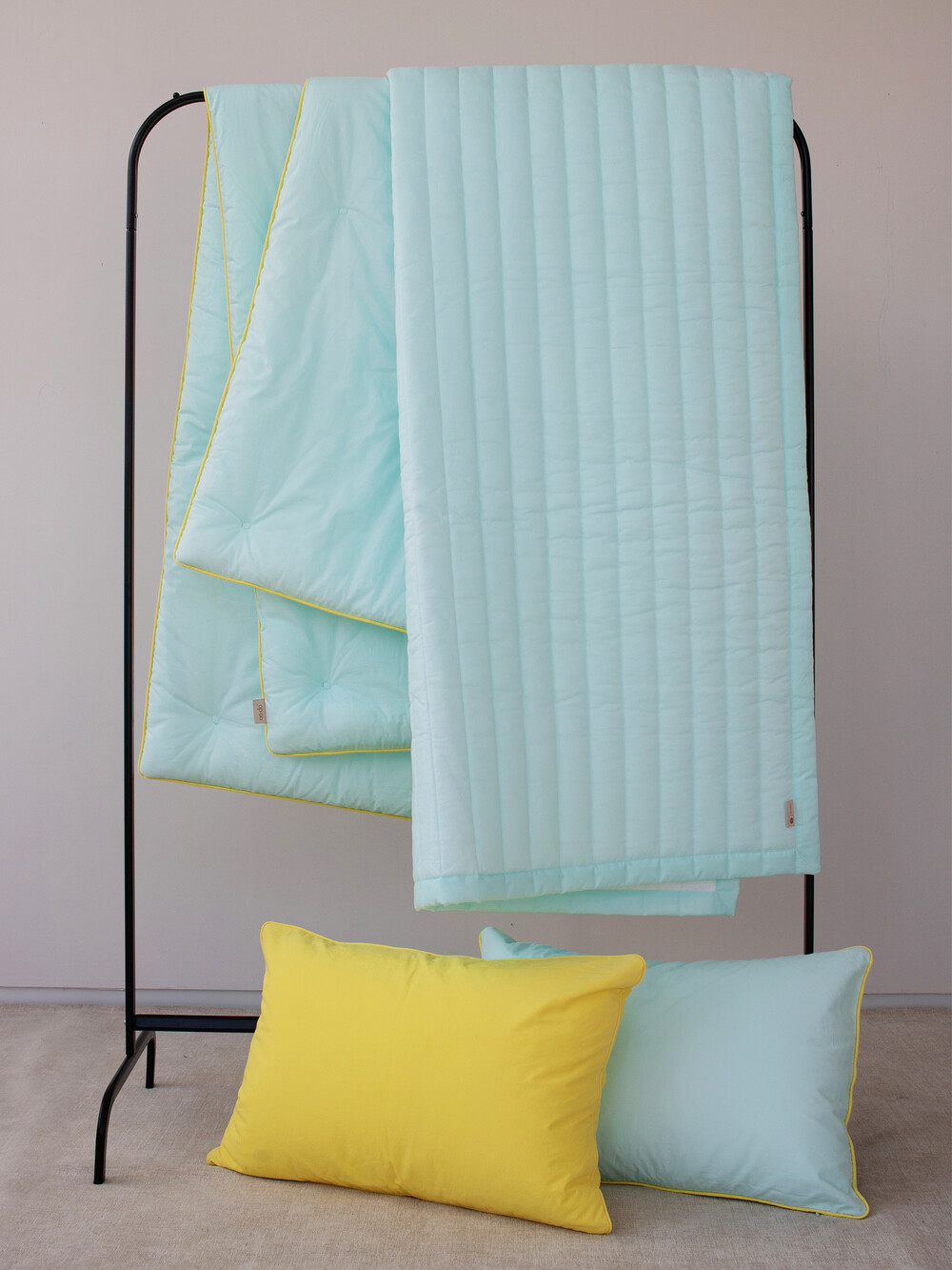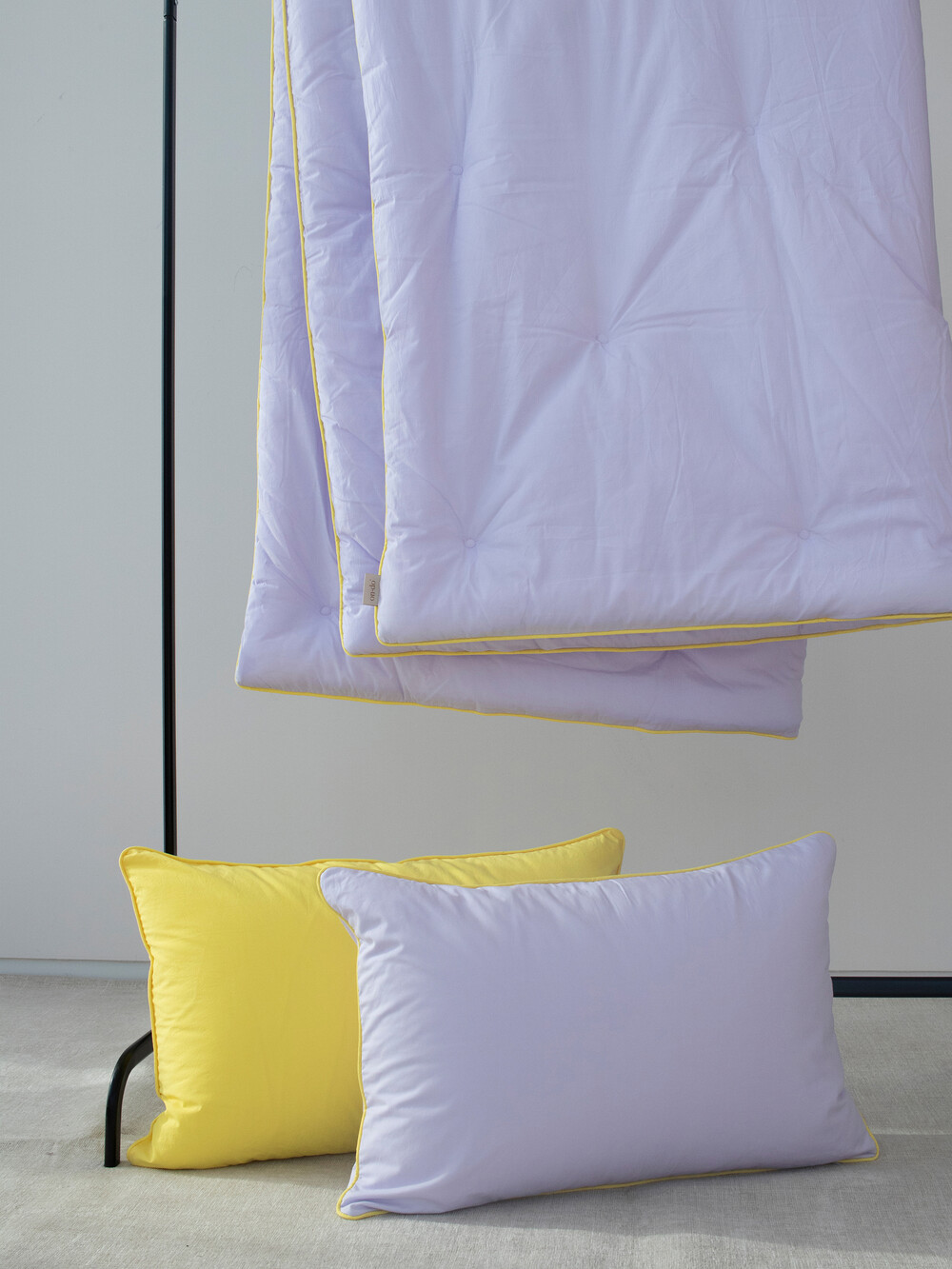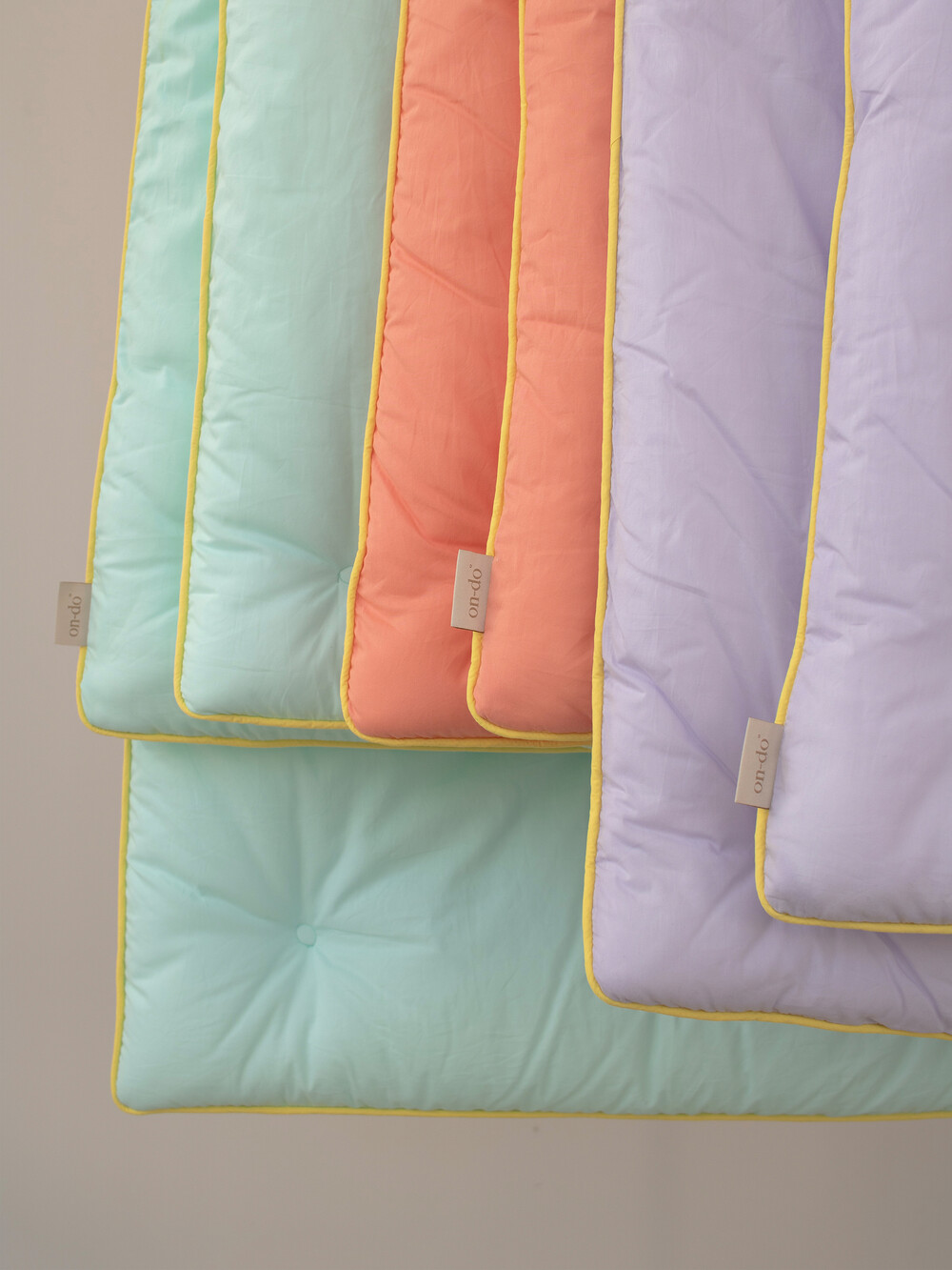 3가지 컬러 모두 테두리에 옐로우 라인 파이팅이 포인트인 차렵이불입니다.