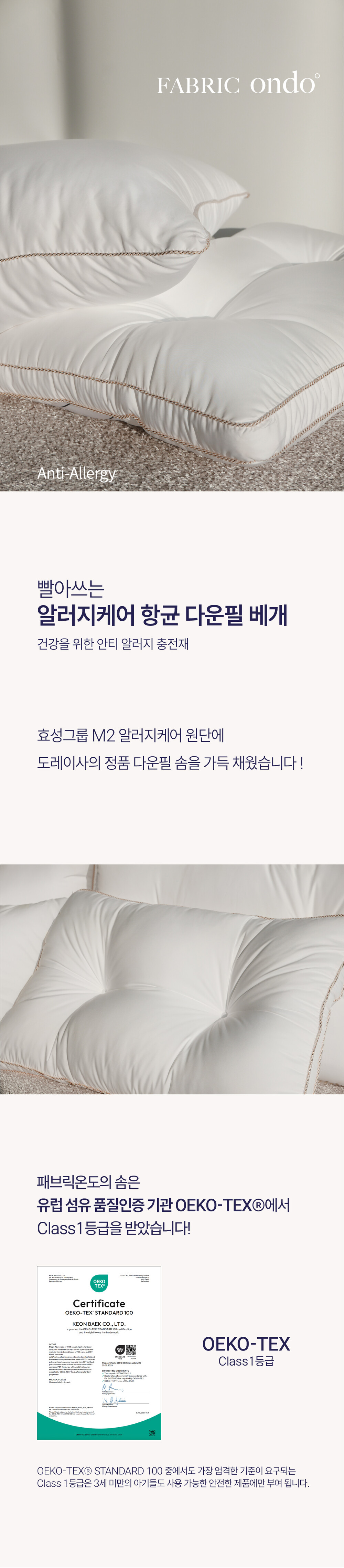 - 패브릭온도의 솜은 유럽 섬유 품질인증 기관 OEKO-TEX®에서 Class1등급을 받았습니다!