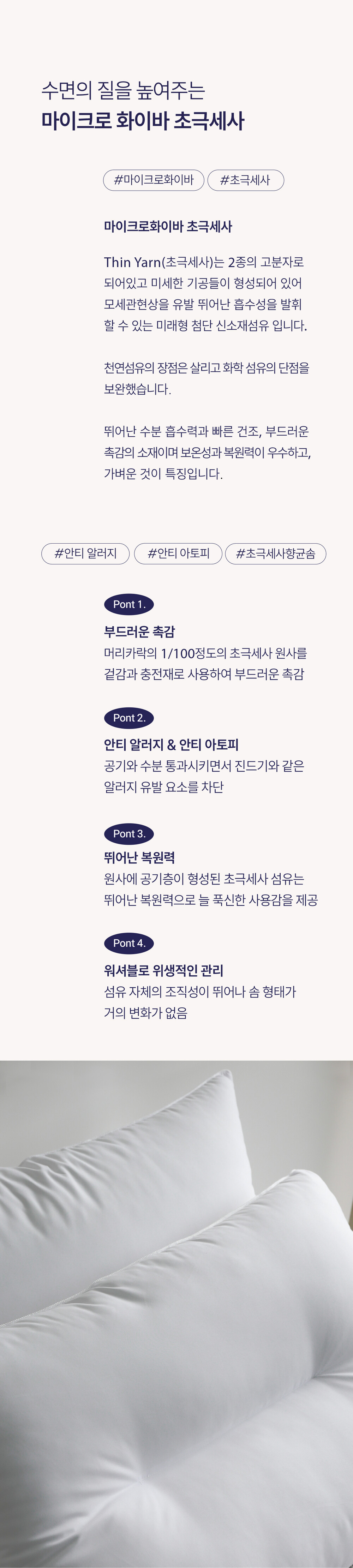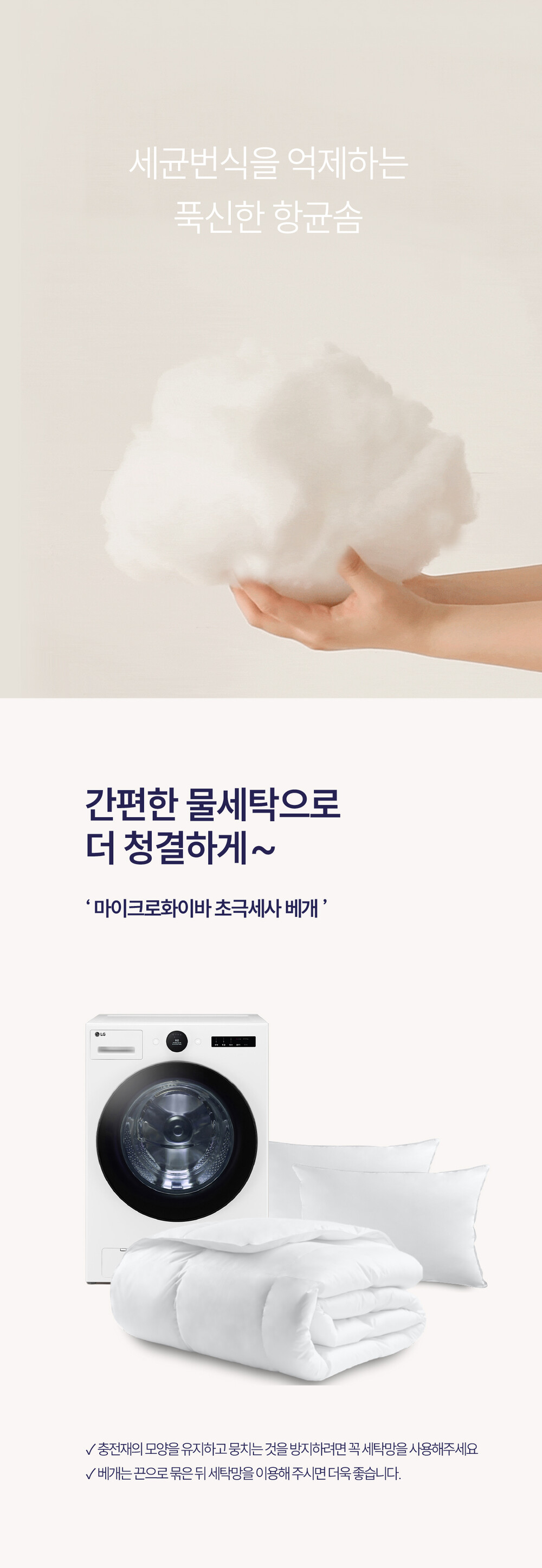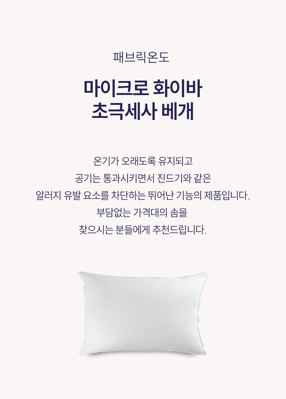 마이크로화이버는 사람 머리카락의 1/100크기의 초 미세 섬유로, 향균 및 항진드기, 항곰팡이, 항박테리아 통과를 억제하여 아토피, 천식, 알레르기, 피부염 예방에 강한 향균성 제품입니다